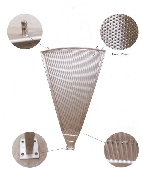 2. 扇片采用316L材质制造,通过激光打孔方式打孔,保证扇面的开孔率和孔 的精密度,可大大提高扇片使用寿命,降低机械维修成本。